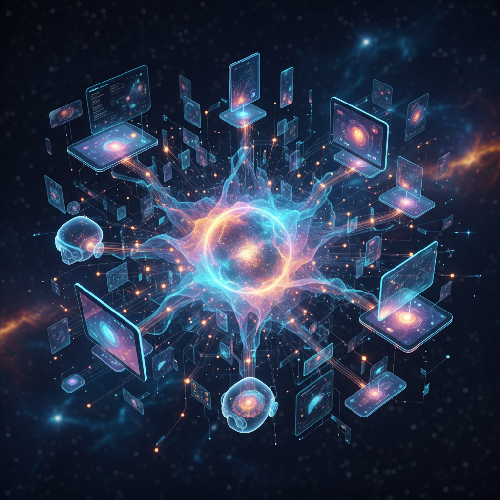 Wizja przyszłości wyszukiwania informacji – sieci AI łączące różne urządzenia i źródła